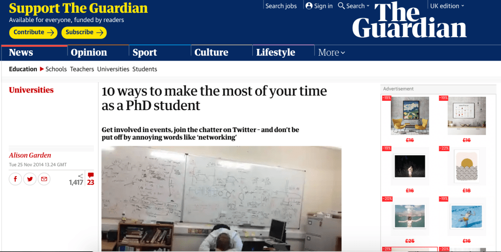 Please note, these guides are written from my perspective as an Arts and Humanities researcher and might not be 100% relevant to you. There is truly no one right way to approach applying for funding and your mileage may vary. That said, I hope you find something of use. I don’t want to perpetuate ‘survivorship bias’, so please read this post of mine about my general thoughts on funding & academia.